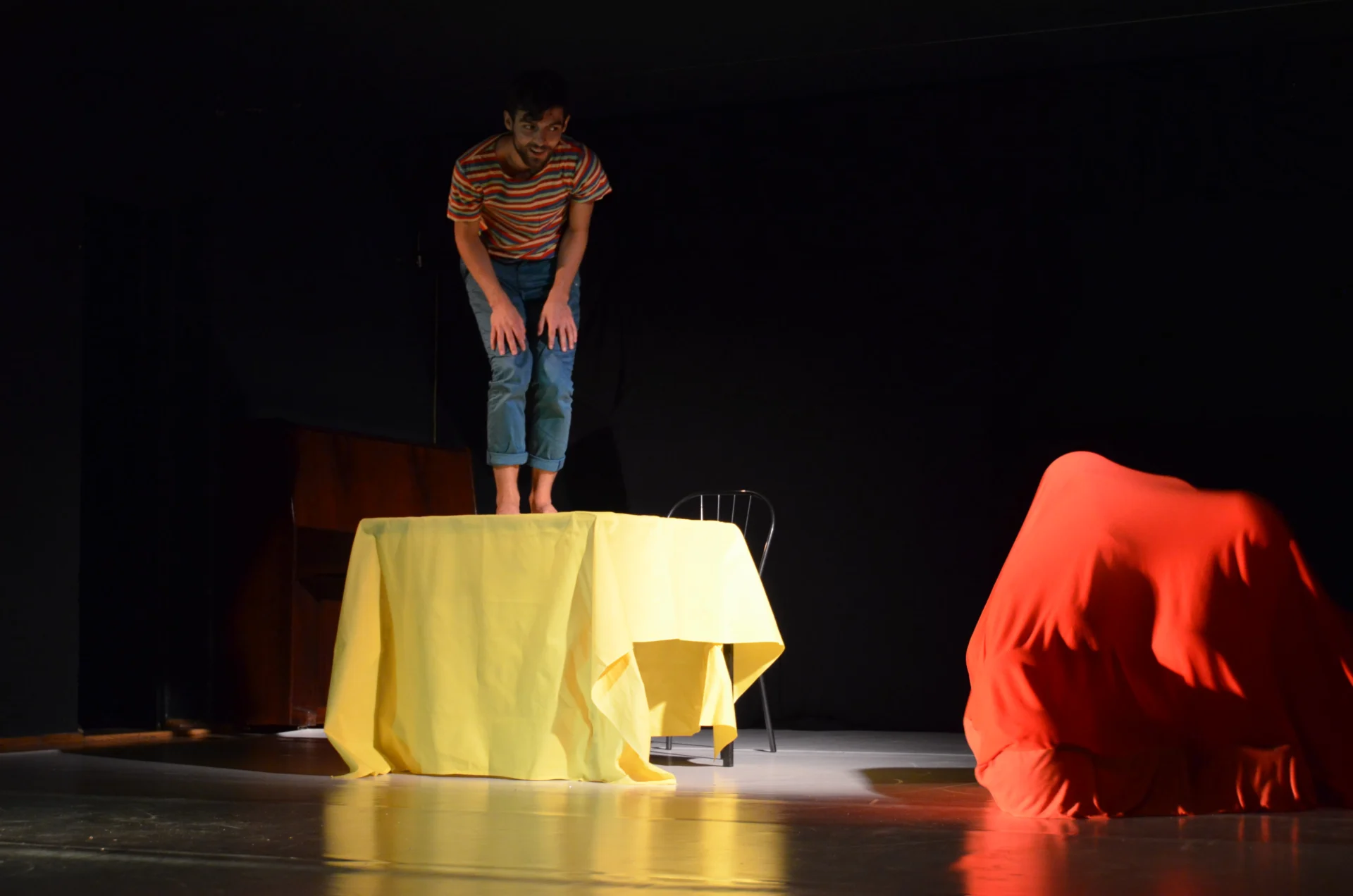 Wymieniam tu nazwiska młodych aktorów oraz reżysera nie bez ważnego powodu. Wszyscy są niedawnymi absolwentami bytomskiego Wydziału Teatru Tańca za wyjątkiem Jakuba Margosiaka, który ukończył Wydział Aktorski szkoły krakowskiej i posiada już całkiem spore doświadczenia z pracy w teatrach tańca w Polsce i za granicą.