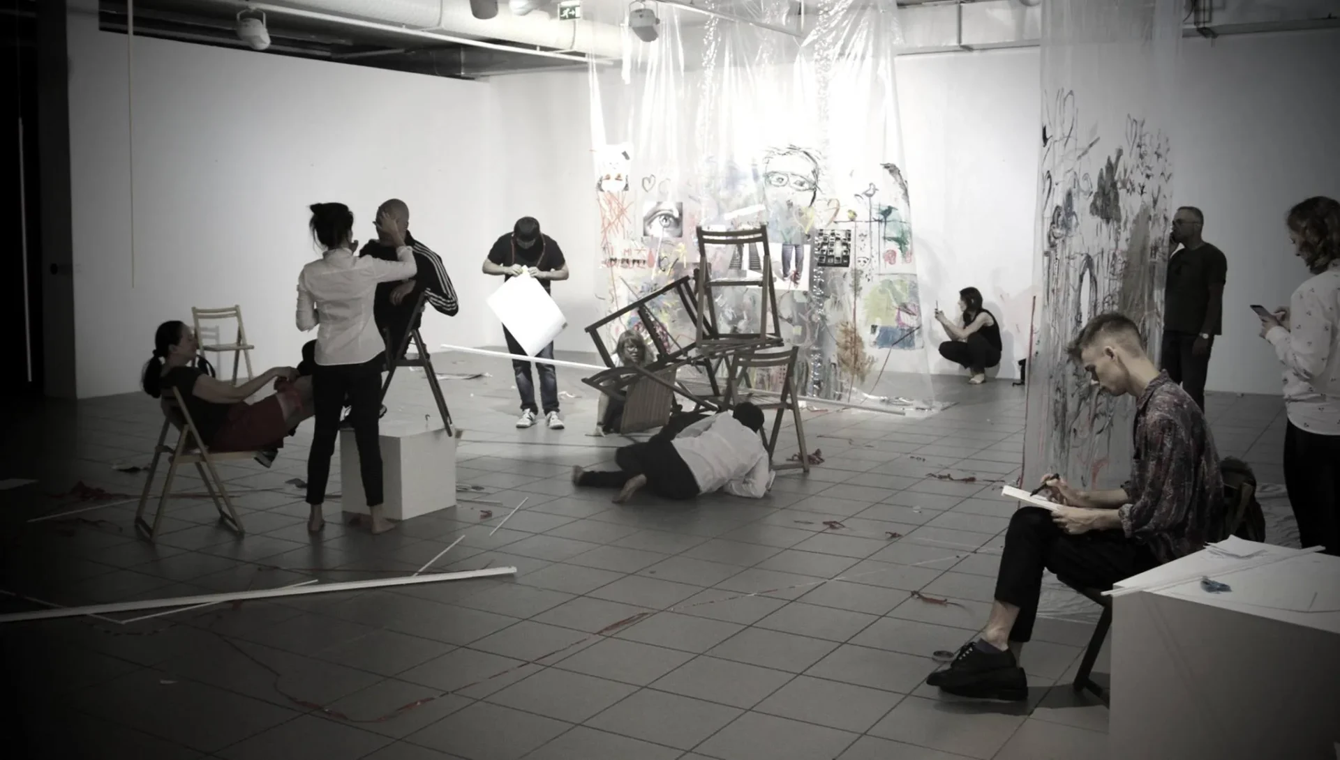 (…) szczególnie sugestywna wydaje mi się scena, w której ciała aktorek i aktorów niczym Kantorowskie bio-obiekty groteskowo zrastają się ze szkolnymi krzesłami. W tym hybrydycznym, a zarazem piekielnie niebezpiecznym kształcie splatają się w ludzką kulę.